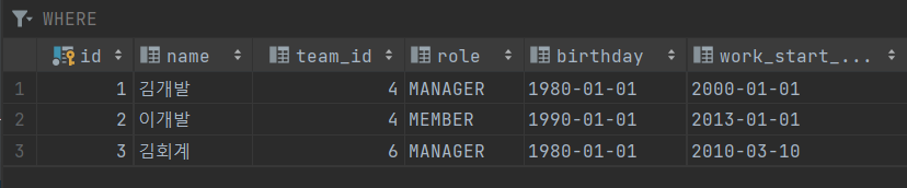 등록해준 팀은 데이터베이스에 잘 저장되어있는 것을 확인할 수 있다.