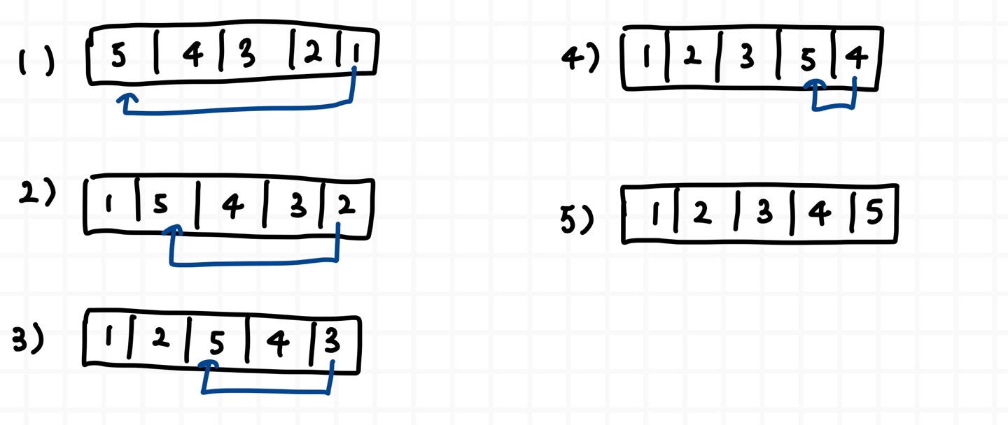 배열의 정렬 과정을 표기하면 아래와 같다.