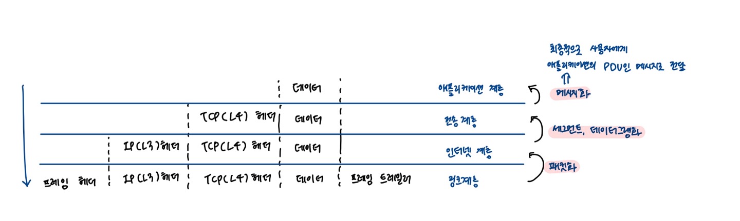 - 링크 계층 : 프레임(데이터 링크 계층), 비트(물리 계층)
