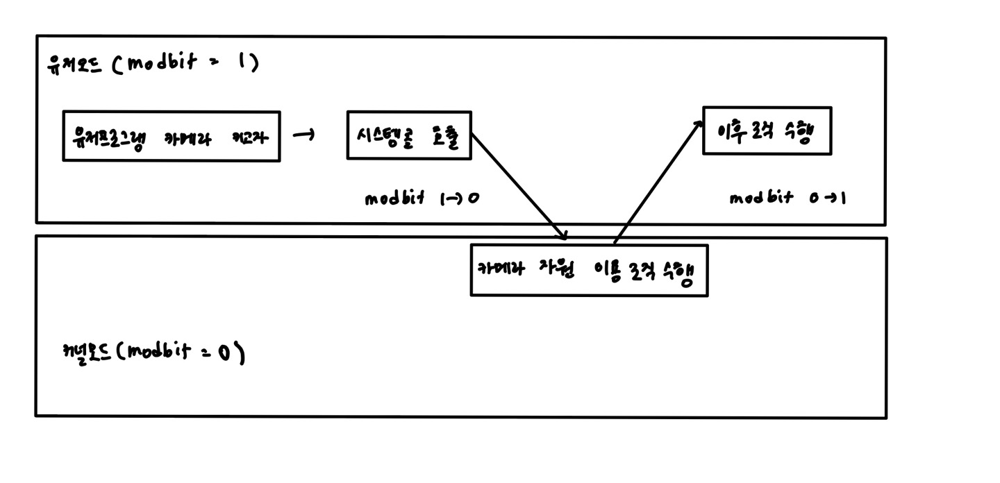 - 시스템 콜 작동 시 modebit을 참고해 유저 모드와 커널 모드를 구분함